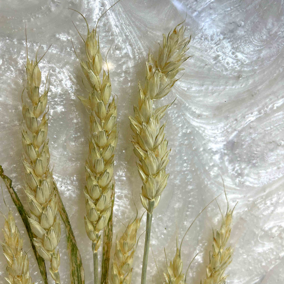 For a natural look and feel. This round charcuterie board has natural dried wheat embedded in the resin. Great as a cheese board for any gathering.